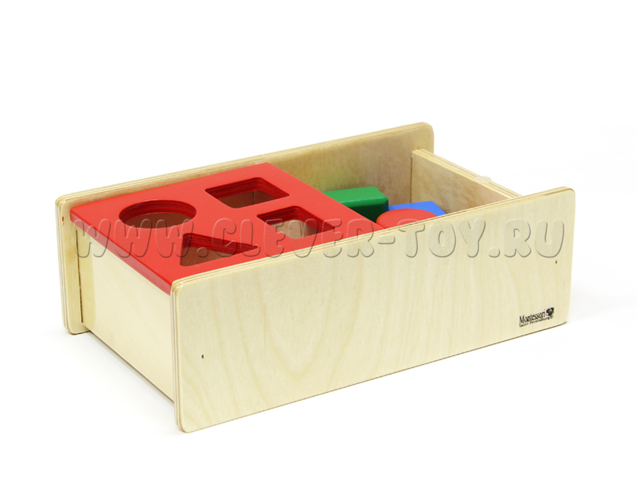 В этот уникальный сортер входят 4 основные фигуры: красный цилиндр, синий кубик, зелёная прямоугольная призма, желтая треугольная призма. Фигуры крупного размера и очень удобны для захвата маленькой ручкой. Присутствует очень удобная перекидная крышка, которая способствует развитию нового движения малыша.