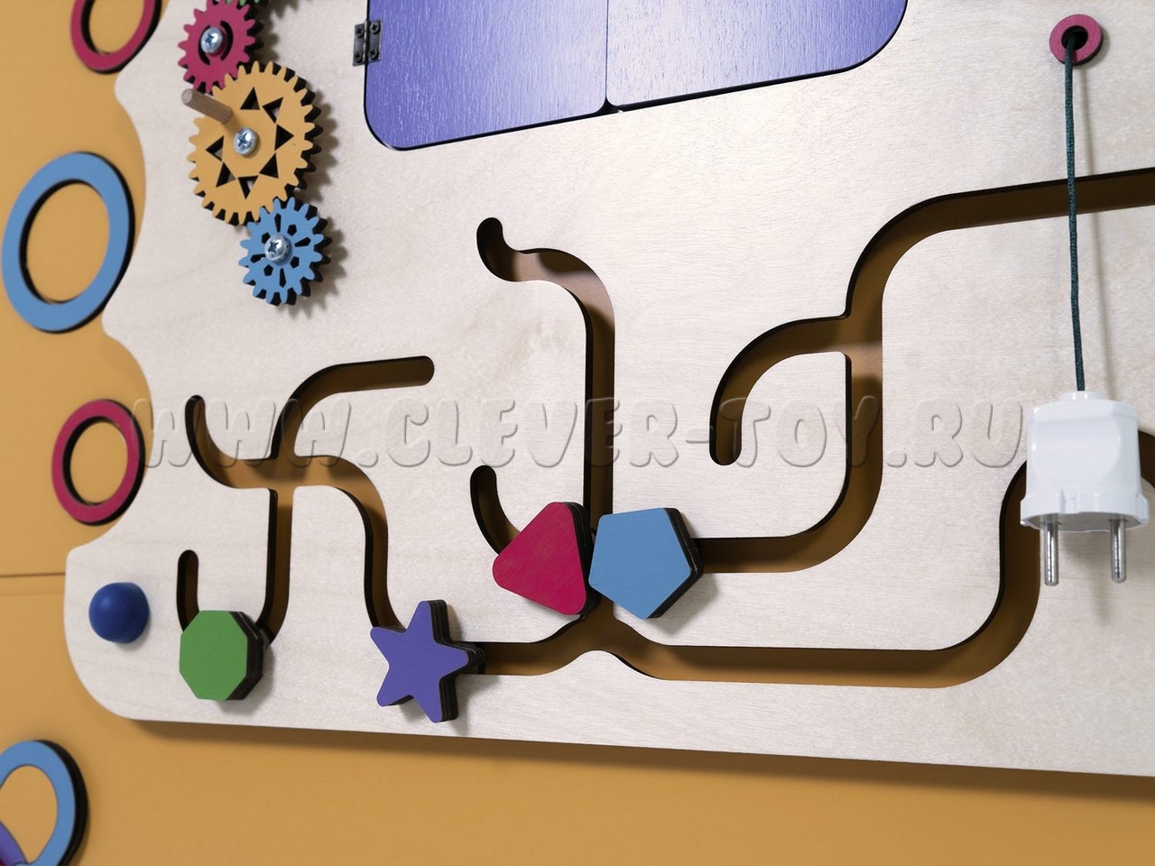 Бизиборд "Гвазго" предназначен для детских образовательных учреждений и помогает изучать геометрические фигуры (форму, количество углов, вид, цвет и особенности). Задания составлены по принципу "от простого к сложному". Например, при изучении геометрических фигур можно тренироваться в счёте, определяя количество углов. Также можно рисовать запомнившиеся фигуры или играть в крестики-нолики, вращая фигуры.