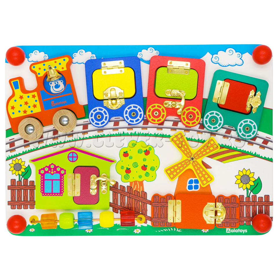 Бизиборд «Вагончики» от крупнейшего производителя деревянных игрушек – фабрики «Алатойс» - выполнен из экологически чистого материала – дерева (берёза).