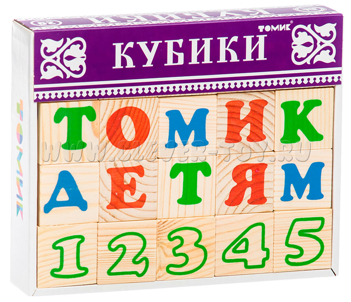В состав входит 20 кубиков с нанесенными буквами русского алфавита и цифрами.