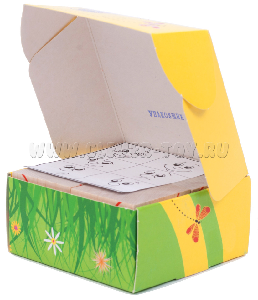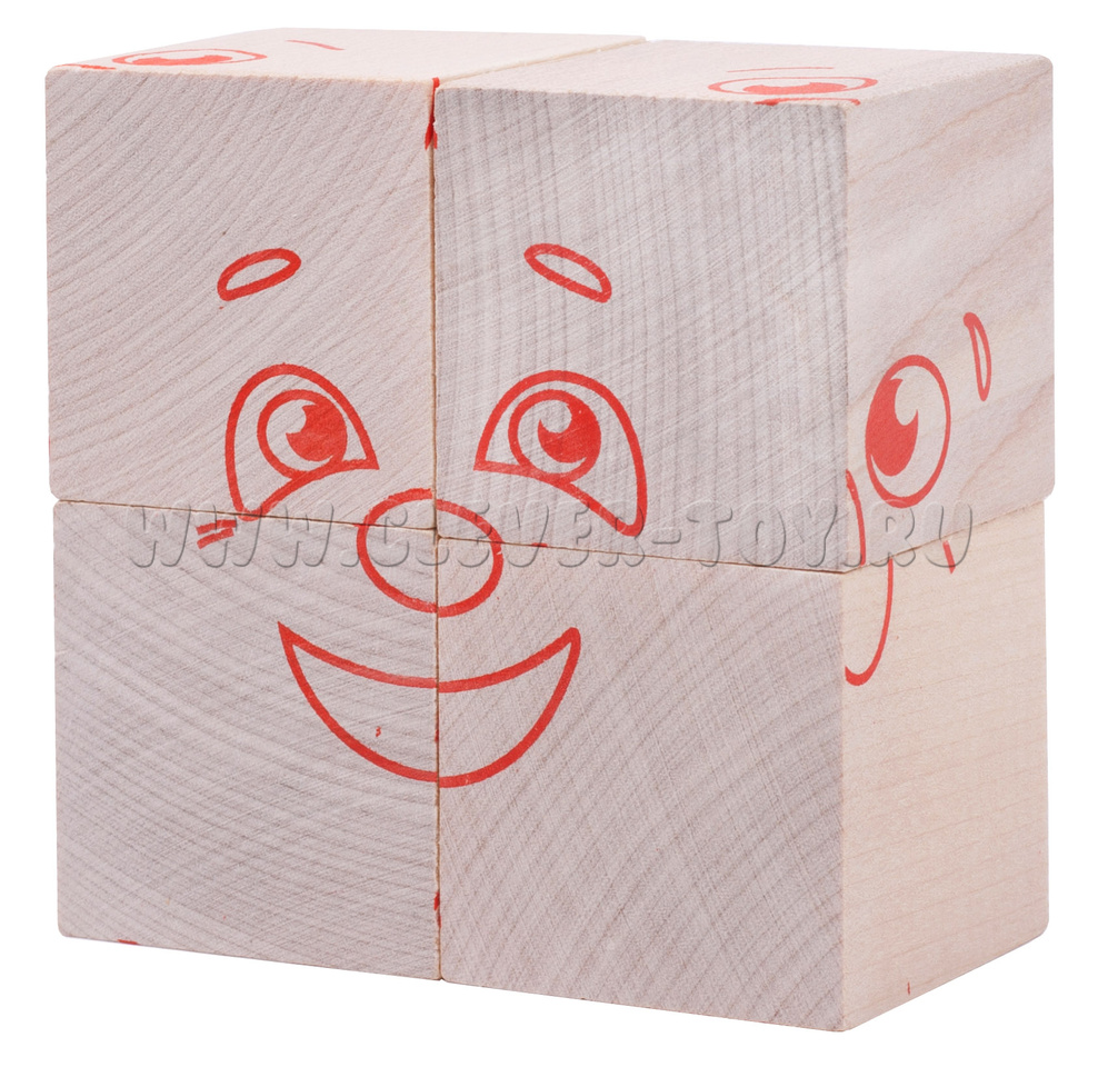 В состав входит четыре кубика, из которых ребенок может собрать 6 изображений, передающих настроение.