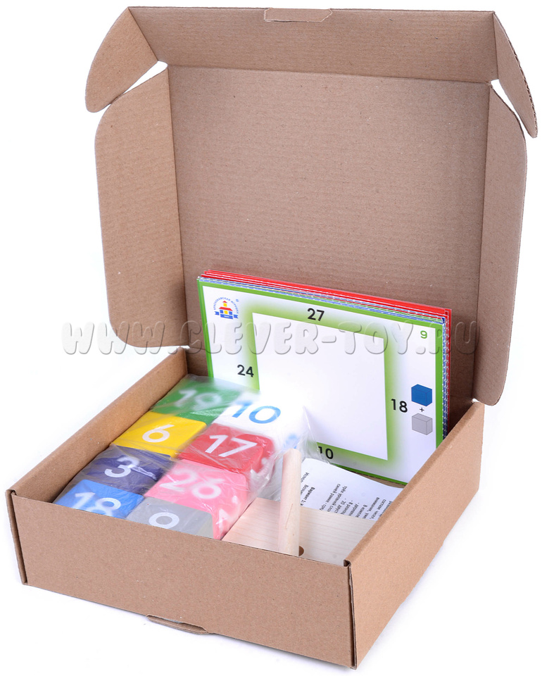 • 8 разноцветных кубиков с цифрами (4 х 4 х 4 см);