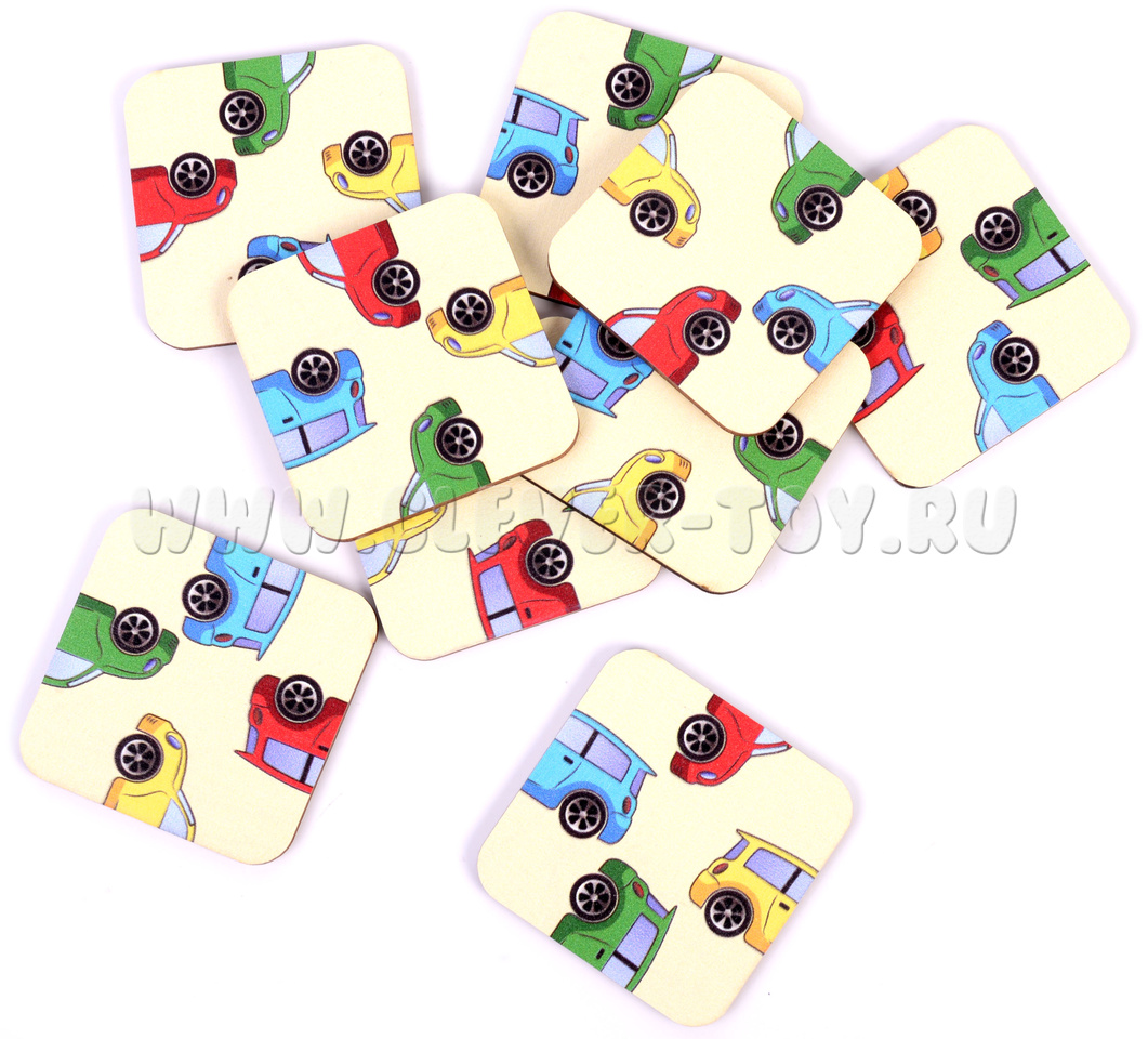 2. Игра "Автослесарь". Достаньте несколько элементов головоломки из рамки-основания. Предложите ребенку вставить квадраты обратно в рамку так, чтобы половинки машинок (капот и багажник) соответствовали друг другу по цвету.  Если ребенок легко справляется с заданием, то извлеките все элементы и попросите собрать машинки в автомастерской.