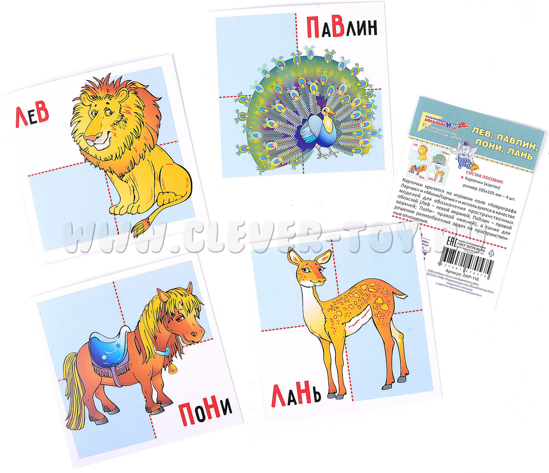 Пространственные карточки Лев-Павлин-Пони-Лань (к Коврографу Ларчик)