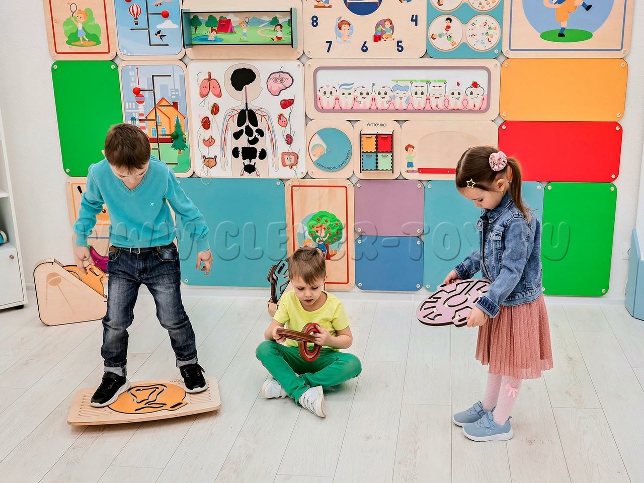 Это игровой нейротренажёр для улучшения координации, развития внимания и логического мышления. Он состоит из двух балансиров для ног и набора балансиров для рук, которые вставляются в специальное углубление на ножном балансире.