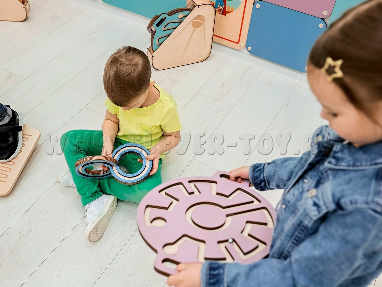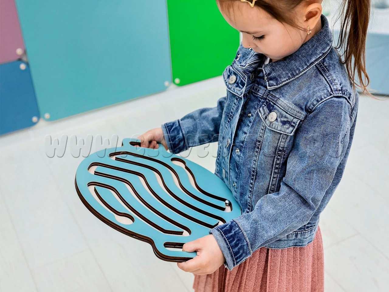 Он представляет собой круглую доску с двумя ручками по бокам и лабиринтом. Задача ребёнка — прокатить шарик через лабиринт, используя движения рук. Игра с балансиром развивает крупную моторику, пространственную ориентацию, логическое мышление и улучшает концентрацию внимания и усидчивость.