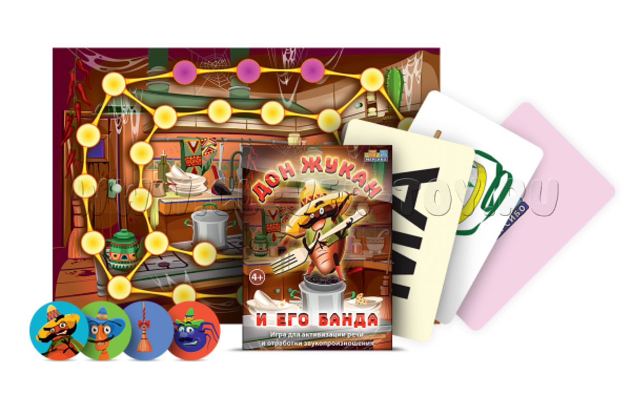 "Дон Жукан и его банда" - настольная игра-догонялка, в которой ребенок "убегает" от ведущего по карте и на каждом ходу повторяет слоги. Игра поможет активизировать речь детей и отработать с ними звукопроизношение.