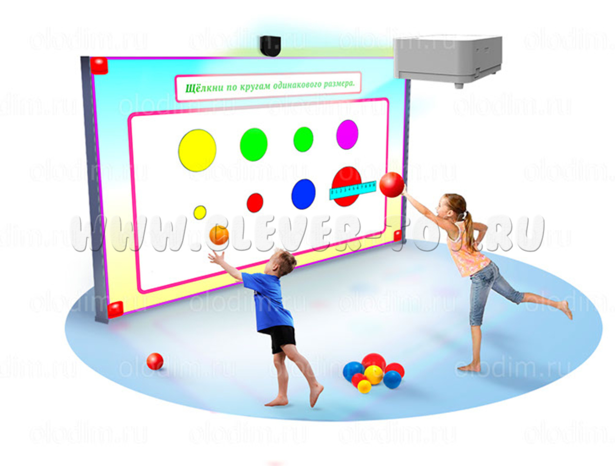 Игры на интерактивной стене способствуют разностороннему физическому и умственному развитию детей, при этом дети могут играть в них самостоятельно, без участия педагога. Интерактивная система позволяет создать плейлист из определённых игр и запускать их в определенное время (например, на переменах). Для выполнения игровых заданий нужно бросать мячики, касаться изображения руками или мягкими палочками. Предустановленные программы позволят детям в игровой форме изучать математику, алфавит, окружающий мир и многие другие  предметы. Часть заданий разбита на возрастные группы, часть рассчитана на детей всех возрастов и часть на совсем маленьких детей. Принимать участие может практически неограниченное количество детей: можно играть всем вместе или делиться на команды, выполняя задания на скорость.