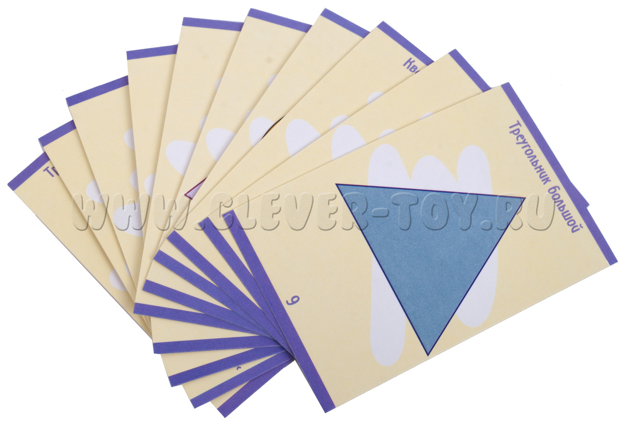 • 5 комплектов тематических картинок – «Геометрические фигуры», «Часы», «Грибы», «Транспорт», «Животные» - всего 50 карточек;
