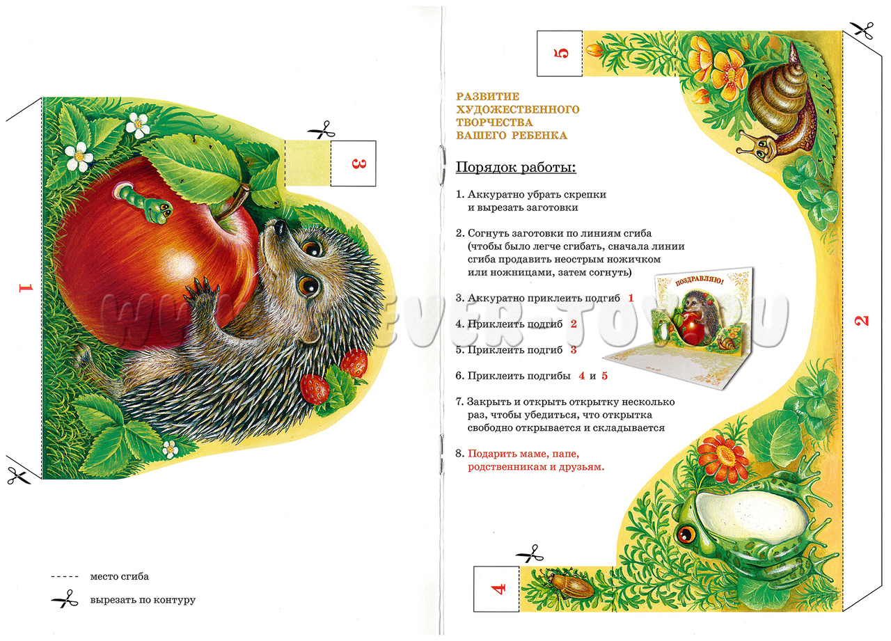 3D объёмная открытка-книжка для детского творчества "Ёжик".