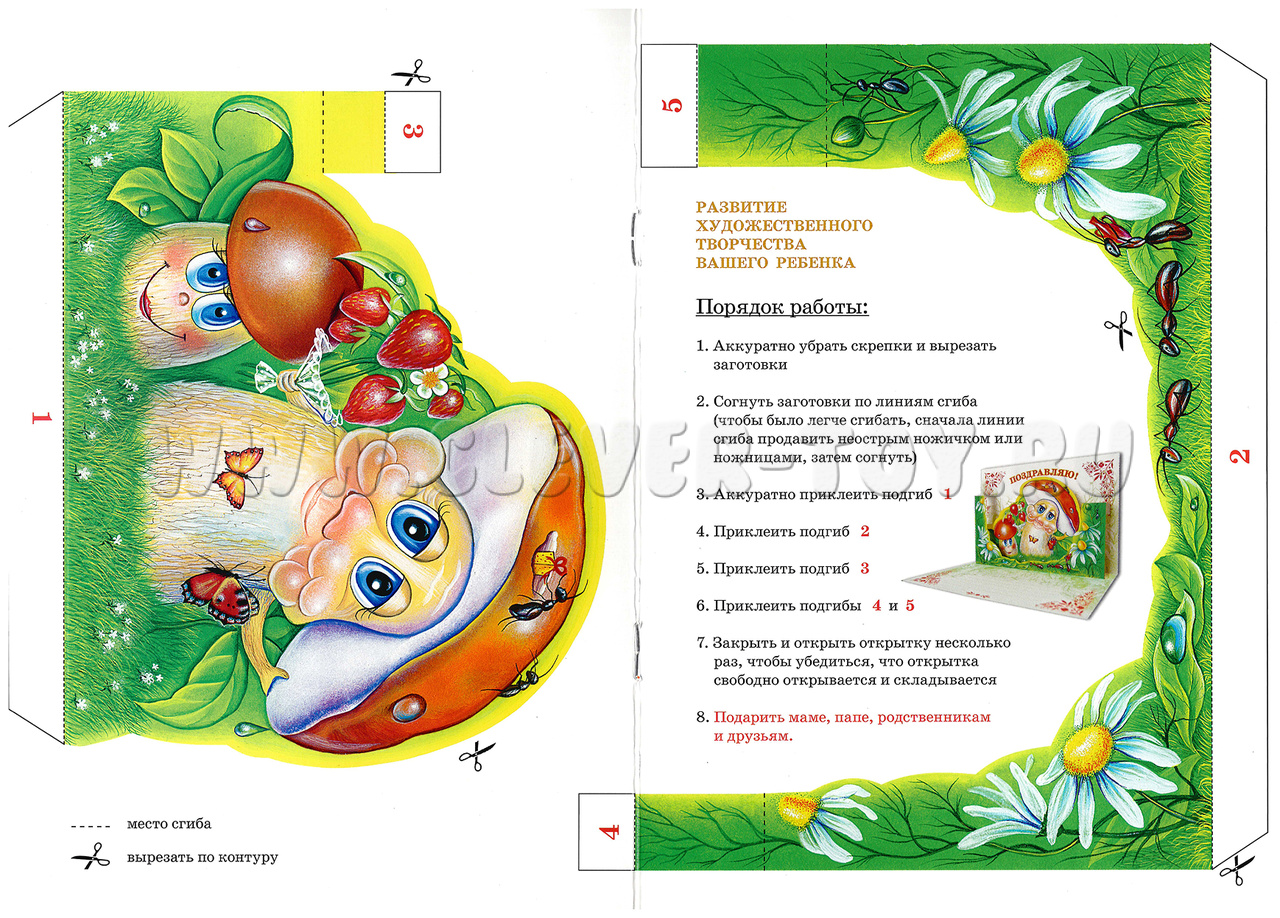 3D объёмная открытка-книжка для детского творчества "Грибочки".