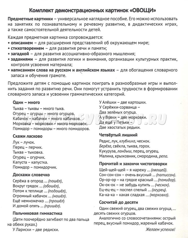 Откройте удивительный мир овощей с нашими демонстрационными карточками! Каждая карточка содержит информацию об овоще: его внешний вид, происхождение, полезные свойства и способы приготовления. Ваш ребёнок узнает много нового и интересного об овощах, полюбит их и станет здоровым и активным! Издание состоит из 16 цветных картинок с текстом на обороте. Дети не только получат ценную информацию, но и ответят на вопросы, отгадают загадки и прочитают стихотворения.
