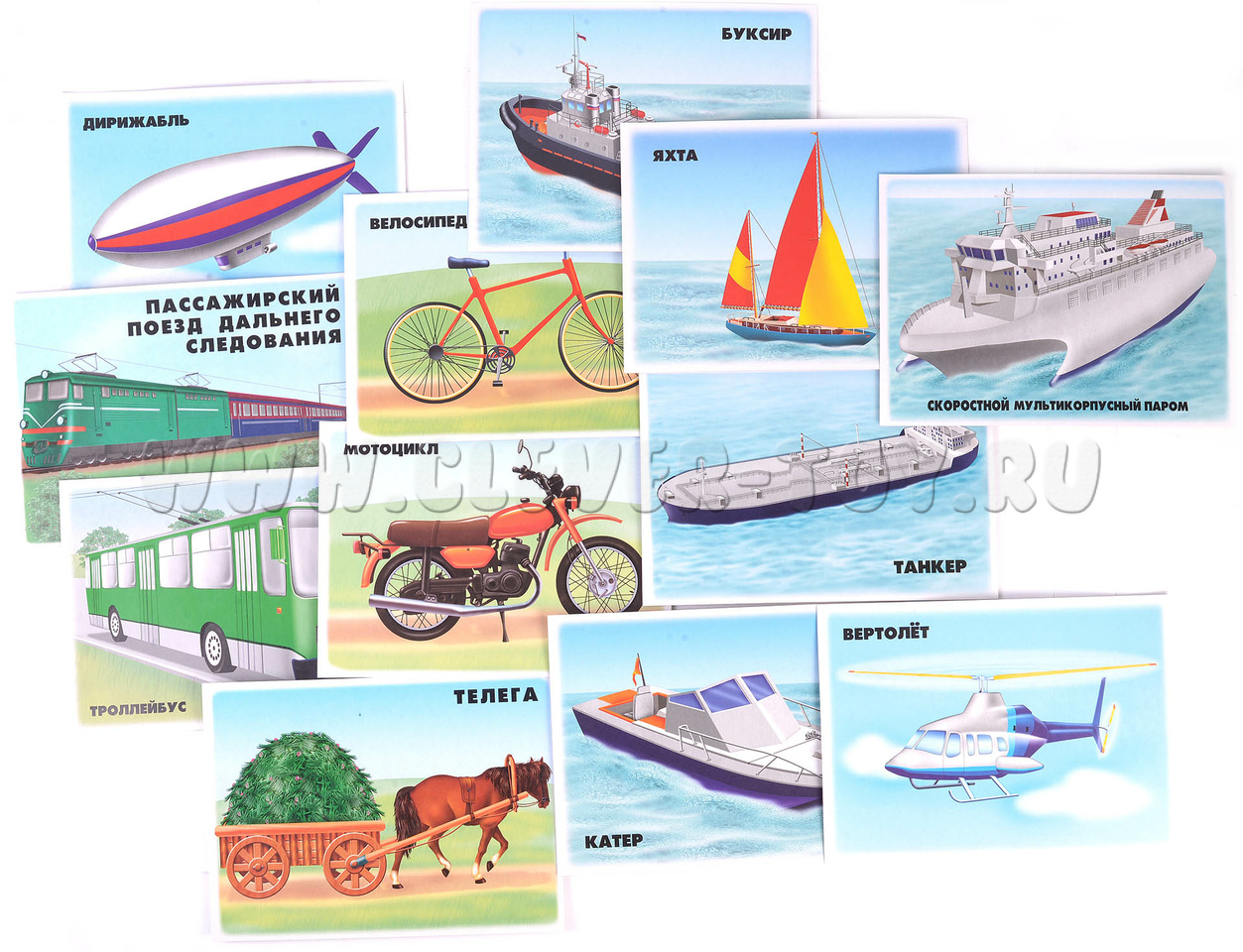 Предлагаем демонстрационный материал, знакомящий детей с транспортом - водным, наземным и воздушным. Изображения на картинках реалистичные и дают полное представление об изучаемом транспорте. Пособие подходит для занятий в группах детского сада, а также индивидуально.