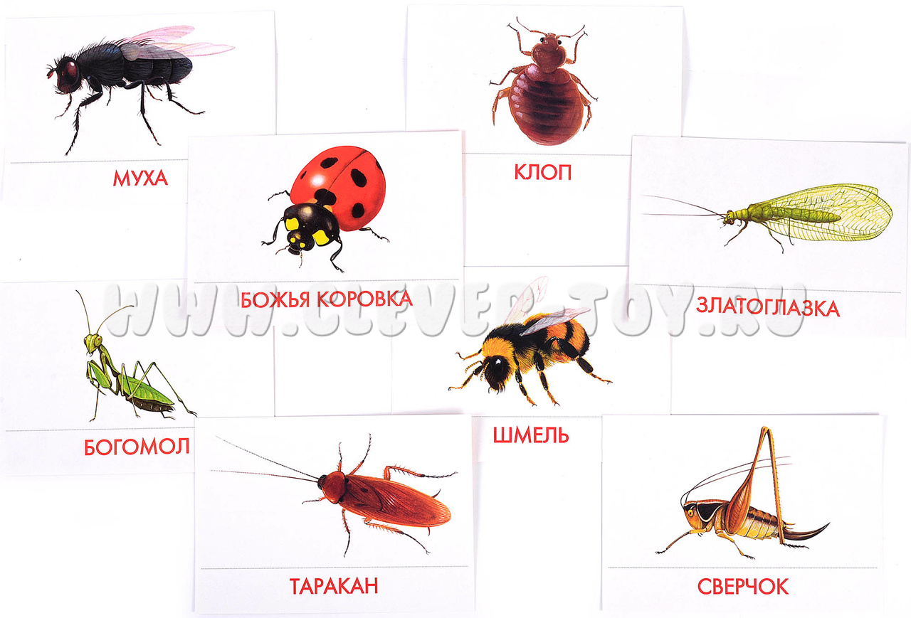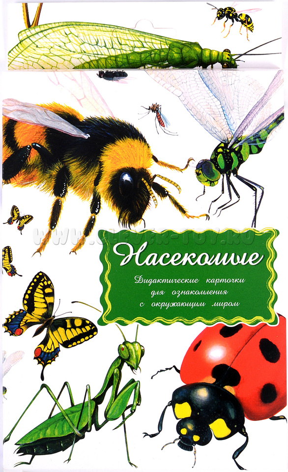 В набор водит 16 карточек с изображениями насекомых: