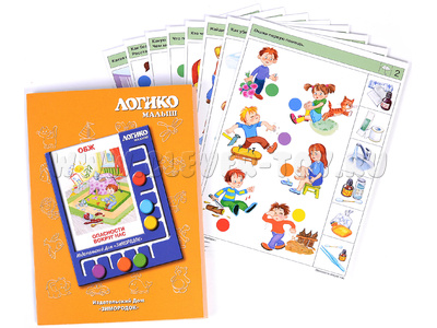 Задания комплекта направлены на обучение ребёнка предвосхищать (предупреждать) опасные ситуации и закреплять алгоритм действий, если все-таки произошёл несчастный случай или происшествие. В процессе решения заданий комплекта дети научатся анализировать возможную опасность, которую могут таить в себе повседневные, с виду безобидные предметы, или ситуации которые могут привести к нежелательным и опасным последствиям. Примеры заданий в карточках: 1б. Какие опасности подстерегают малыша в этой комнате? 2а. Окажи первую помощь. 2б. Предупреди бабушку с дедушкой об опасности. 4б. Что случилось в этой комнате? 7а. Какую опасность таят эти предметы?