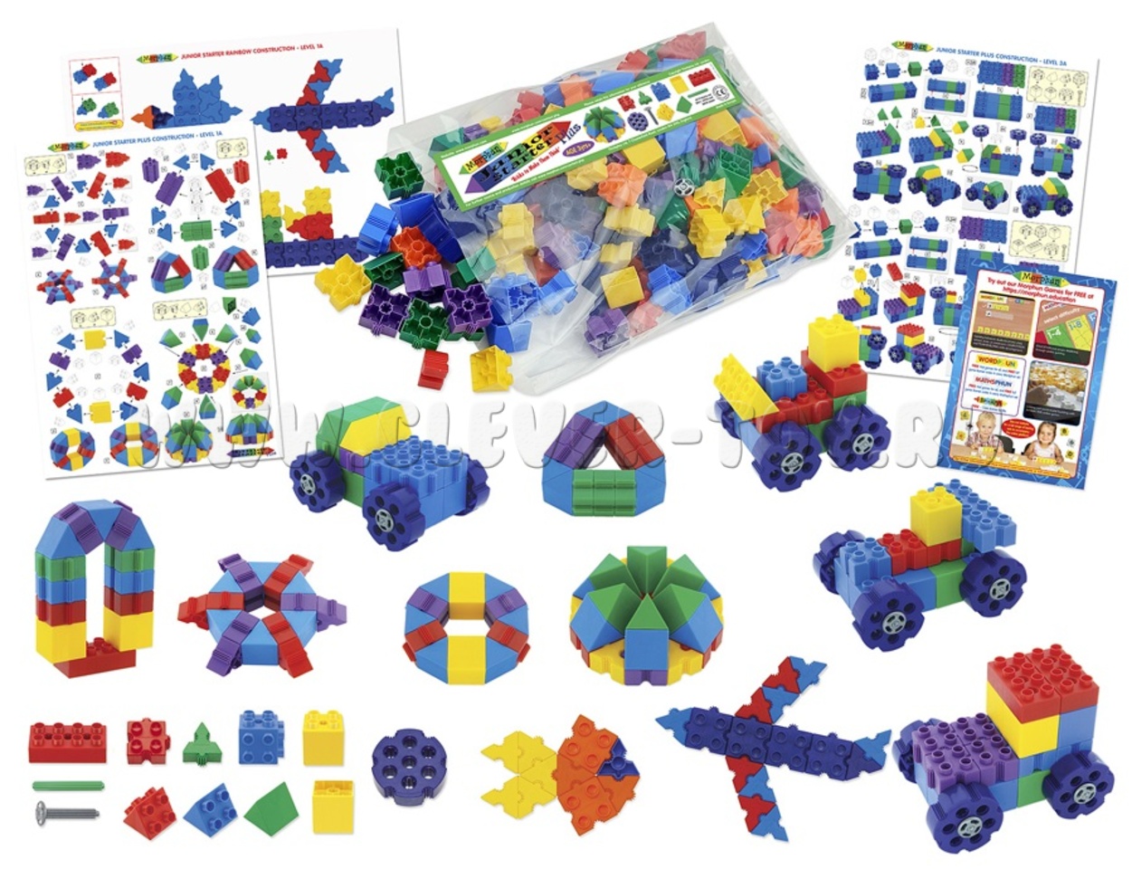 В наборе предусмотрена инструкция-схема на листе формата А3, с изображением готовых моделей в масштабе 1:1. Ребенок легко научится собирать свои первые конструкции, выкладывая непосредственно на инструкции детали набора, а затем, соединяя их в соответствии с представленным изображением. Качество конструкторов Morphun® подтверждается наличием европейских сертификатов качества, изготовлены из высококачественного, прочного пластика.