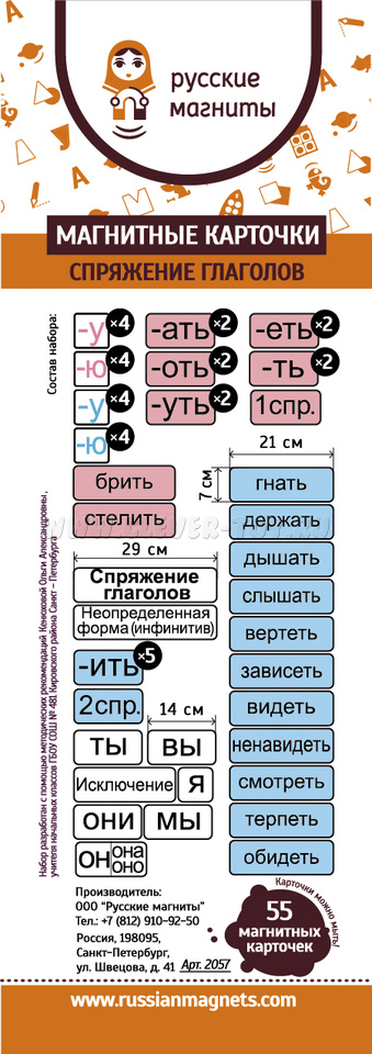Набор магнитных карточек «Спряжение глаголов» – незаменимый помощник для преподавателей русского языка и всех. В комплект входит 55 ярких карточек, которые превратят процесс обучения в увлекательное и наглядное занятие.