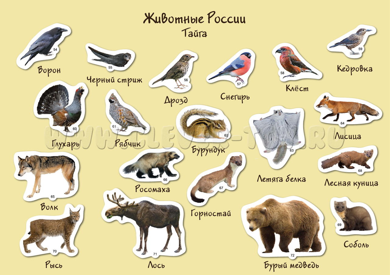 В набор включены 87 животных, обитающих на просторах нашей страны.