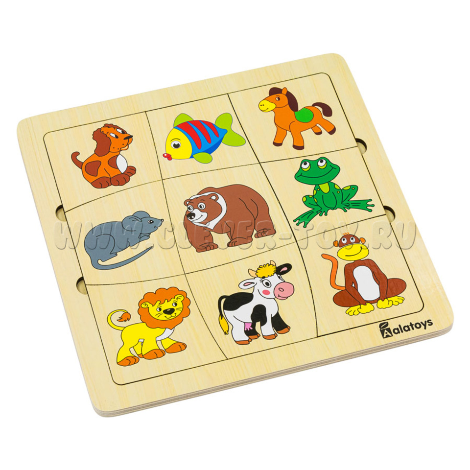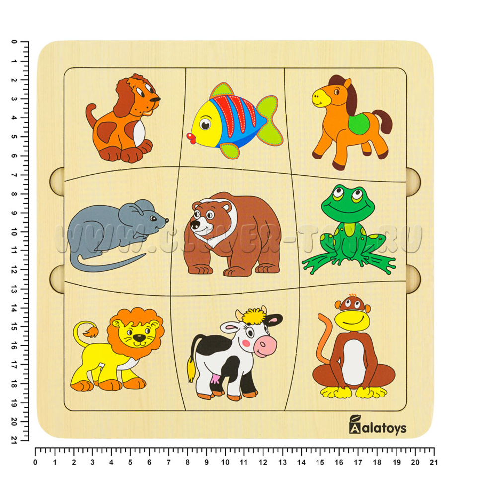 Пазл-ассоциации "Животные" (21*21 см, 9 карточек, основание)