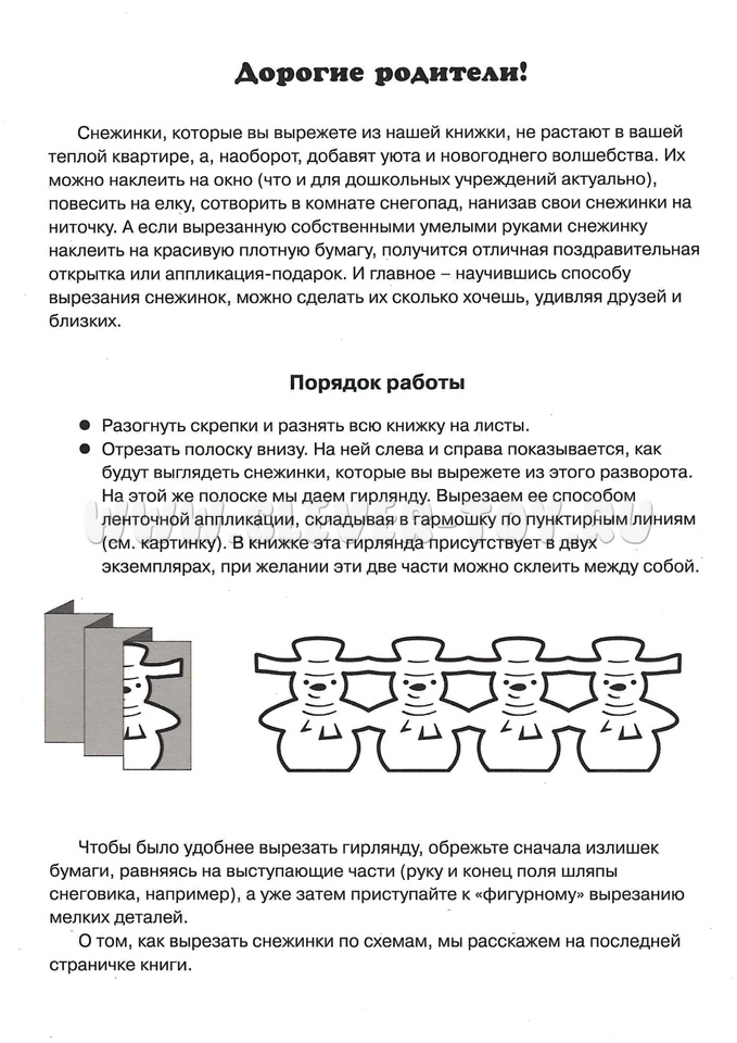 Снежинки, которые вы вырежете из нашей книжки, не растают в вашей теплой квартире, а, наоборот, добавят уюта и новогоднего волшебства. Классическая технология, доступная детям! И главное - научившись способу вырезания снежинок, можно сделать их сколько хочешь, удивляя друзей и близких. Приучайте детей фантазировать, работать руками и создавать красоту!