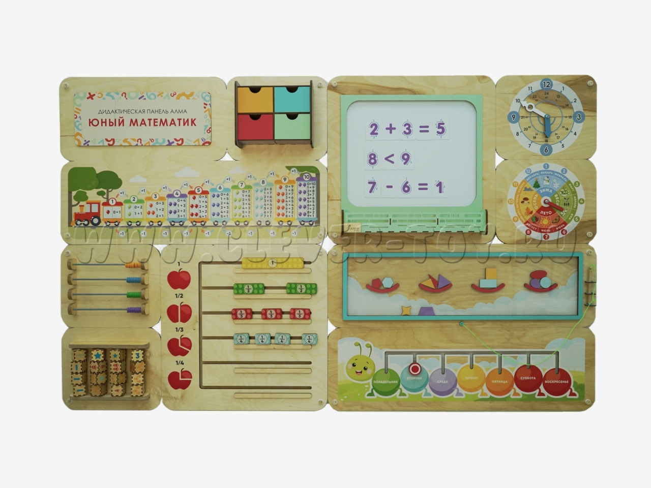 Дидактическая панель "Юный математик" создан для развивающей предметно-пространственной среды, формирования интереса к математике, познавательного развития детей, а также для оформления стен детского сада.